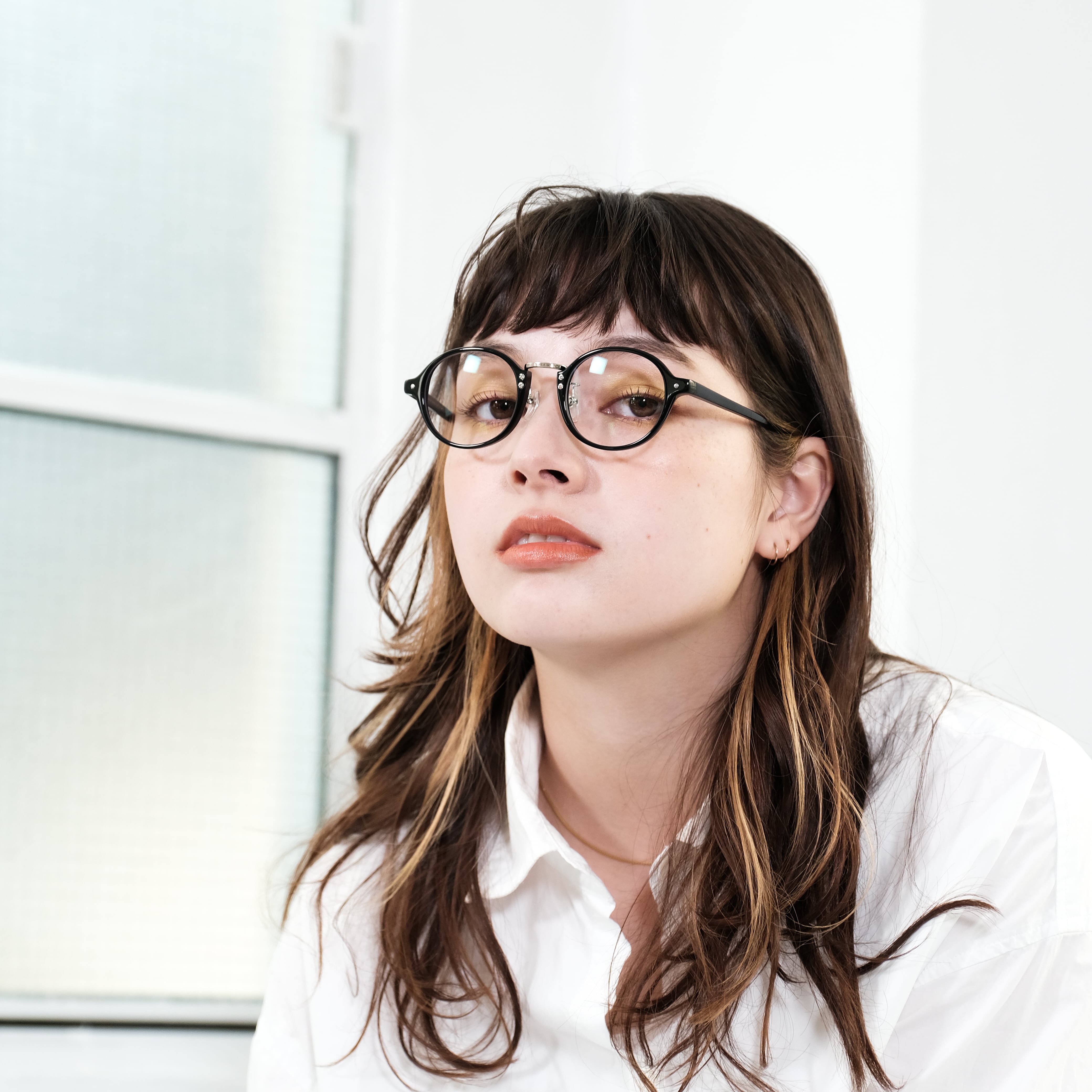 ラウンド型の可愛らしいデザインの中に、独創的なデザインのブリッジを採用したことで、どんなシーンにおいても個性を演出できる眼鏡です。