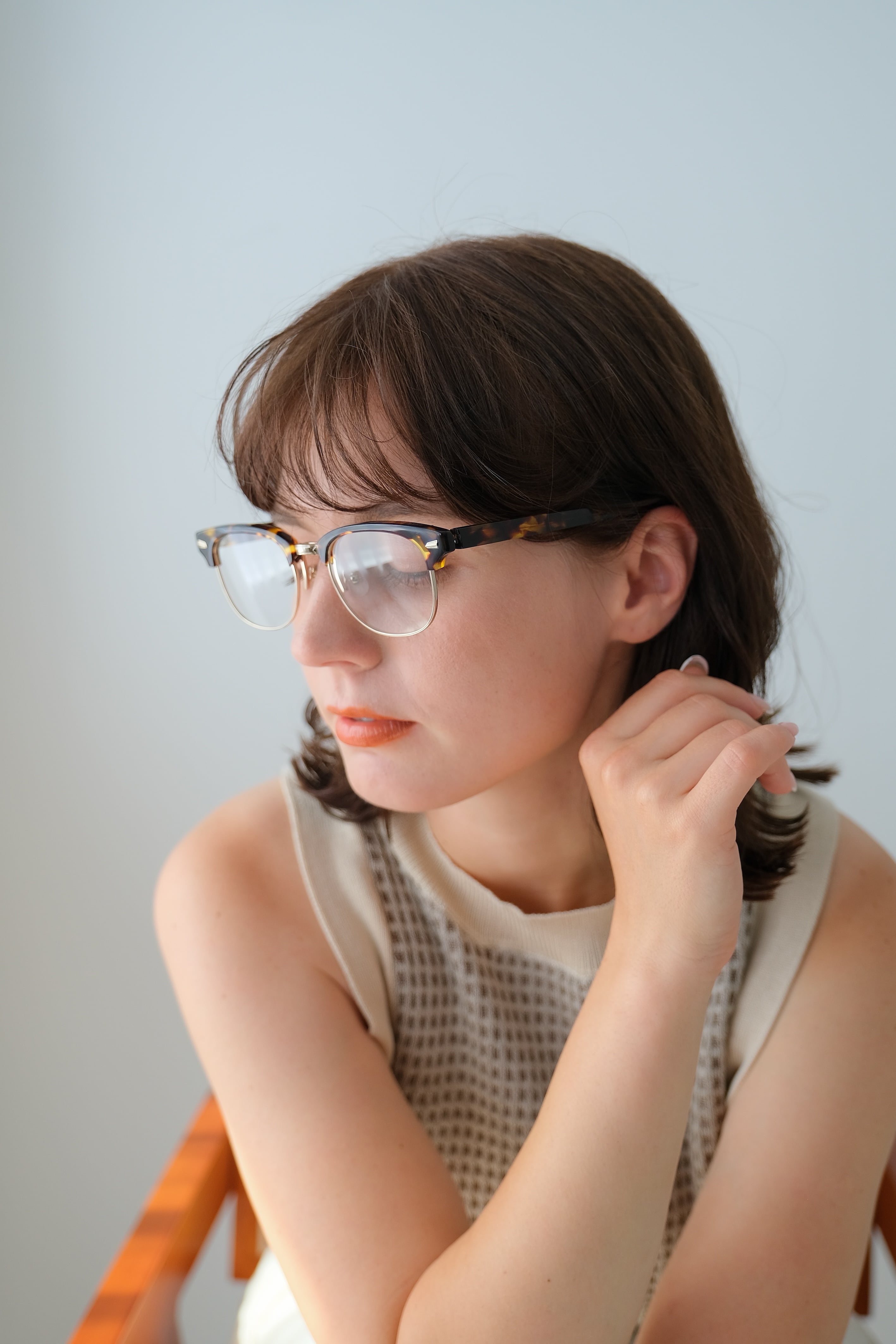 鼻筋をはっきりさせる効果もあり、どんな方にもかけやすいモデルとなっております。
